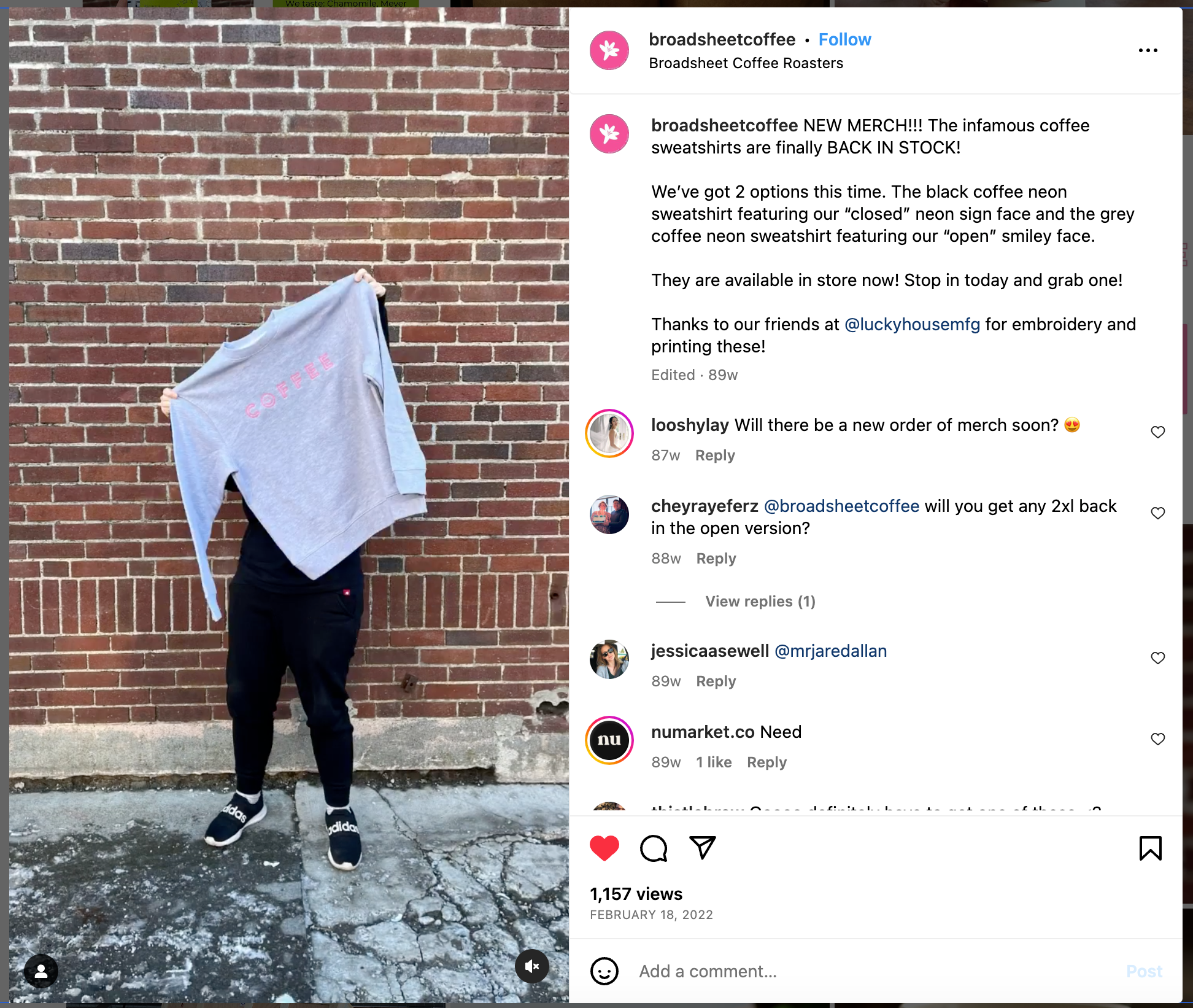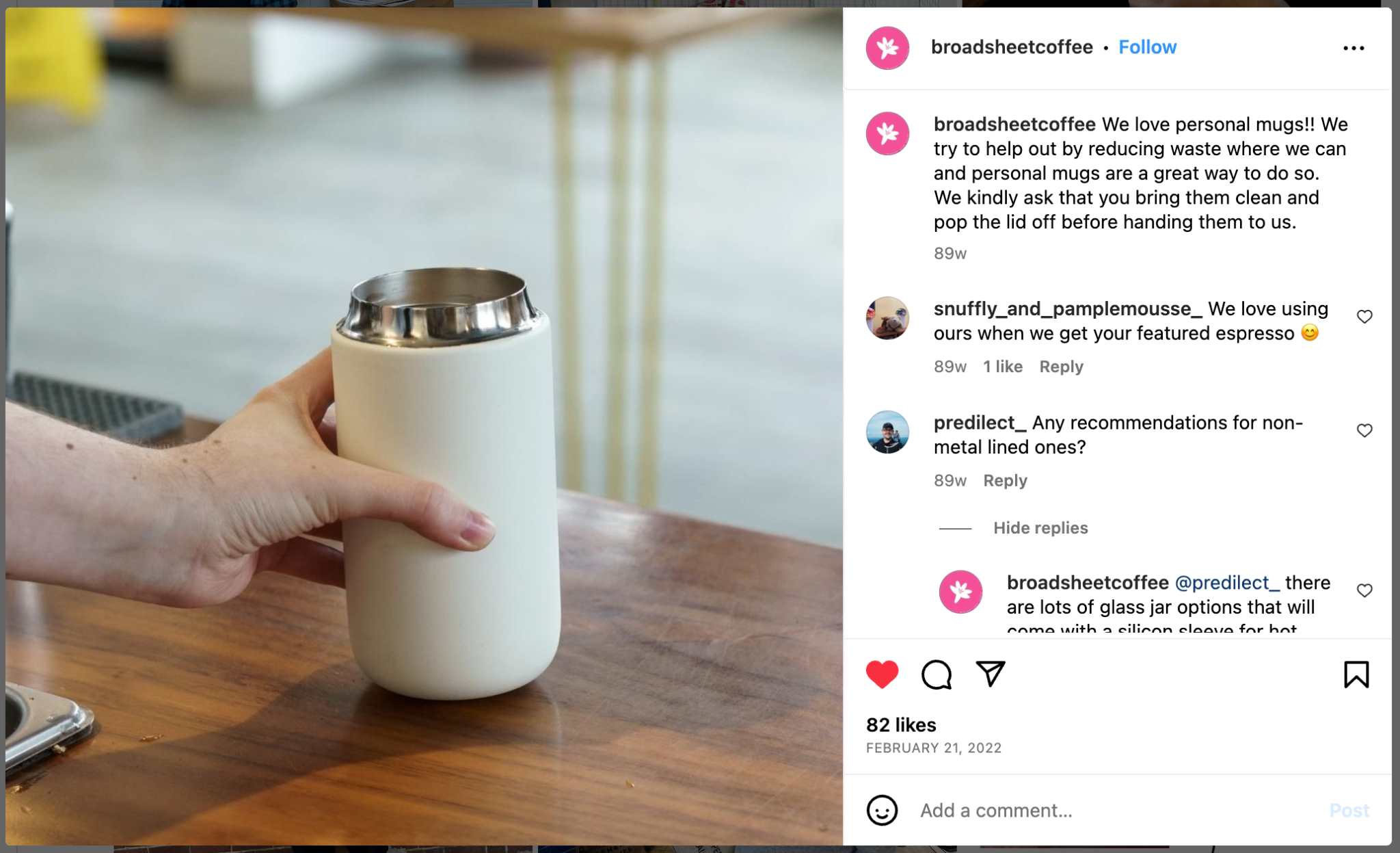 These Instagram captions and images are from my time spent as the Social Media Manager for Broadsheet Coffee Roasters. I meticulously planned, crafted, and scheduled engaging content for their social media platforms, ensuring a vibrant and educational online presence for the brand. You can click on the image to be redirected to the original post.